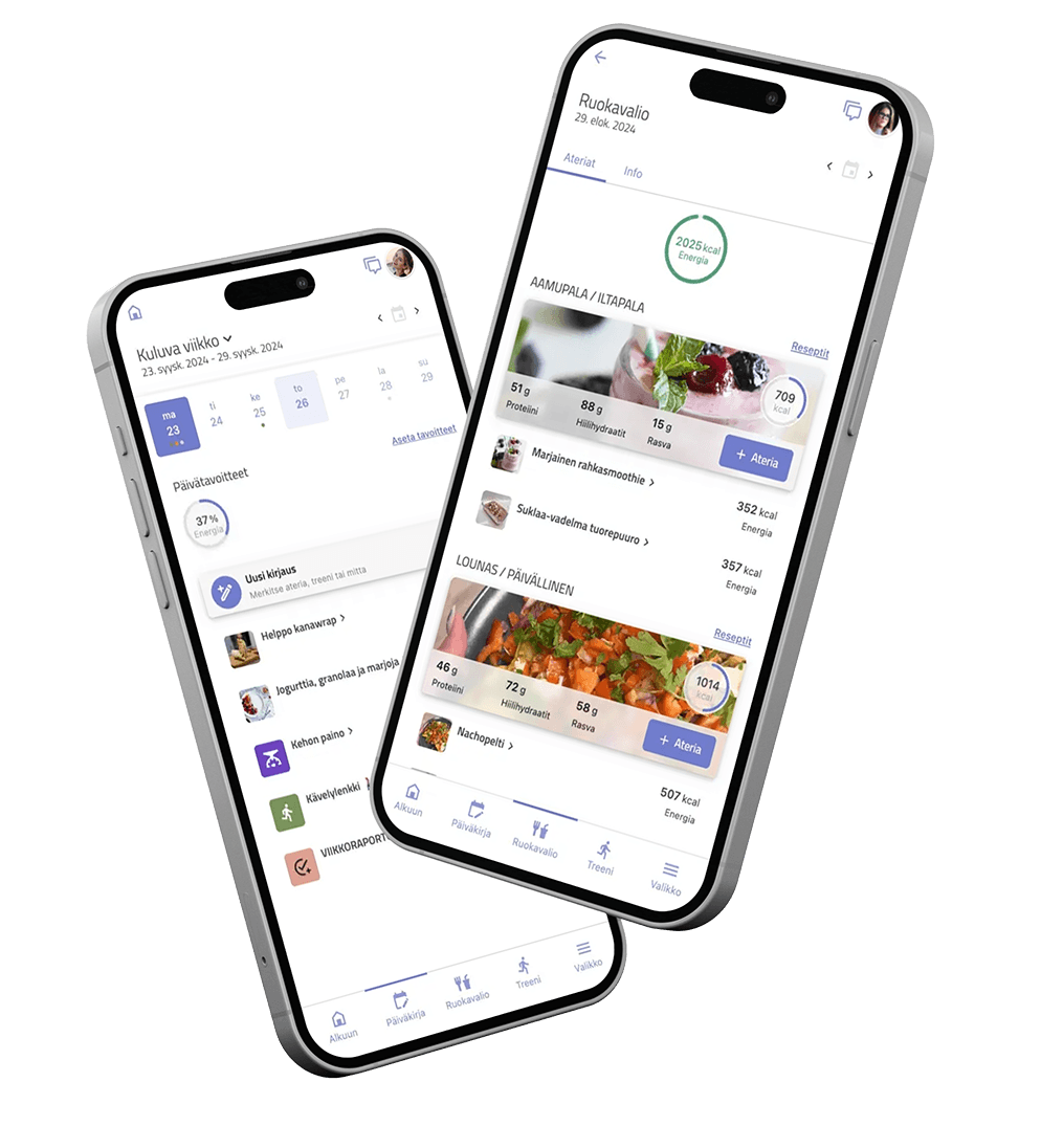 👉🏼 Lasken sinulle henkilökohtaisen kaloritavoitteen, joka tukee tavoitteesi lisäksi jaksamistasi ja suorituskykyäsi. Saat käyttöösi laajan reseptipankin (250 kpl), josta saat itse valita mieluisesi reseptit käyttöön!